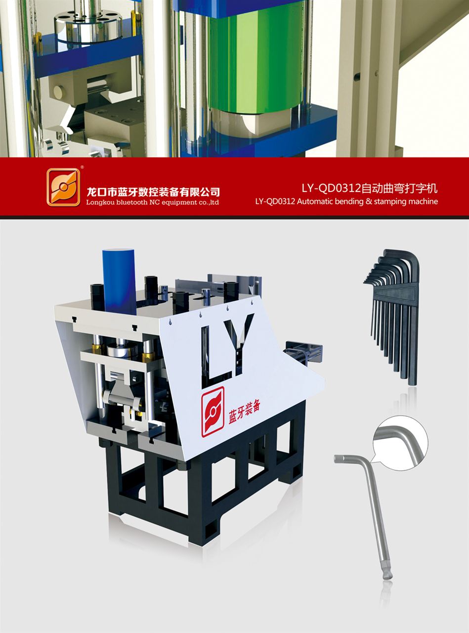 ★內(nèi)六角打字折彎?rùn)C(jī)床改變了傳統(tǒng)的加工工序,針對(duì)于五金工具行業(yè),內(nèi)六角,花形六角板手,及套筒附件等需要既曲彎成型又要打字的產(chǎn)品,進(jìn)行了多工序的整合,一次成料,打字曲彎成型同時(shí)完成
