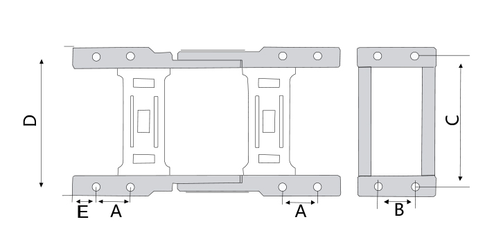 | 序列號(hào) | 內(nèi)高 | 內(nèi)寬 | 外高 | 外寬 | 彎曲半徑(R) | 打開(kāi)方式 | 節(jié)距 | A | B | C | D | E | 孔距 |