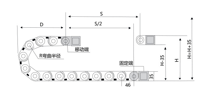 示意圖技術(shù)參數(shù)節(jié)距=46mm,每米節(jié)數(shù)=22,鏈長(zhǎng)=S/2+K,S=行程距離,K=π.R+"安全量"R5575100H1......
