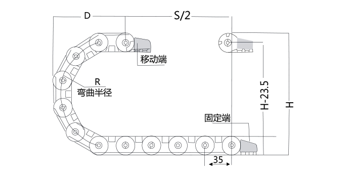 系列號(hào) | 內(nèi)高 | 內(nèi)寬 | 外高 | 外寬 | 彎曲半徑(R) | 打開方式 | 孔徑 | 對(duì)應(yīng)接頭孔距(mm) | 接頭訂購型號(hào) |